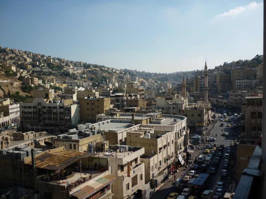 Mit einer kleinen Verspätung landet der A-319 der Royal Jordanian Airline auf dem Queen Alia Airport in Amman. Mit dem Hotel-Taxi gehts mitten rein ins viertel Downtown ins Hotel Arab Tower. Endlich durfte ich Franzi nach sieben Monaten wieder in die Arme schliessen. Sie ist schon seit ein paar Stunden hier im einfachen Hotel mitten in Amman. Während den ersten zwei Tagen beschränkten sich unsere Ausflüge auf die nähere Umgebung des Hotels und die Organisation der weiteren Reise. In unserem Hotel gabs freien WLAN-Zugang womit sich die Recherche selbst in einem vom Massentourismus verschonten Reiseland, ziemlich bequem bei süssem Chai-Tee erledigen lässt. Der weiter Verlauf war im groben geplant und das Mietauto für fünf Tage organsiert. An dieser Stelle muss ich einfach eine kleine Werbung für den Autoverleih einschalten. Der Service war unkompliziert, guenstig, und auf Wunsch unsererseits wurden wir sogar aus dem hektischen Stadtverkehr chauffiert. Vor uns liegt jetzt der Highway nach Jerash und unsere Fahrt von Nord nach Süd in fünf Tagen beginnt.