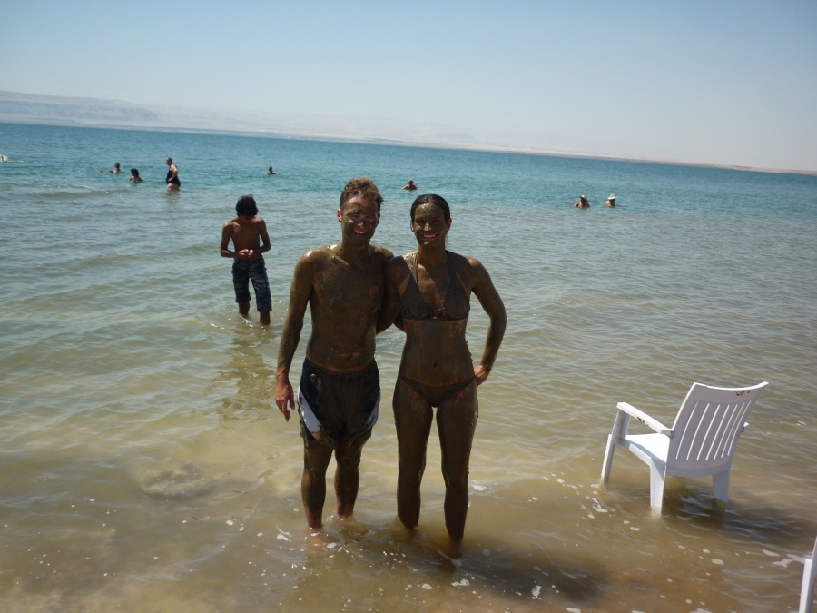 Beim einzigen öffentlichen Strand auf jordanischer Seite vom Toten Meer lassen wir uns in dem brutal salzigen Meer treiben. Ein verwirrendes Gefühl, im Wasser zu liegen und nicht zu versinken. Auch mit der grössten Anstrengung ist es nur schwer möglich die Füsse unten zu behalten. Ebenso ist es ratsam auf dem Rücken zu schwimmen. Denn nur schon der kleinste Schluck des salzigen Nass im Mund könnte zum Tode führen. Der hohe Salzgehalt von 33% (Mittelmeer 3.5%) bringt die Wände der Lungenbläschen zum platzen und führt zum Erstickungstod. Hält man sich aber an die Regeln, ist dieses schweben ein fantaschtisch entspannendes Gefühl. Nachdem wir noch ein wenig im Süsswasserpool geplanscht haben, wobei uns noch ein grobes Missgeschick passiert ist. Als wir so im Wasser planschten, legten wir unsere Beine mit ausgestreckten Füssen auf den Beckenrad – was bei uns daheim normal ist, gilt in einem Islamischen Land als Anmahsung. Die Fusssohle seinem Gegenüber zu zeigen ist eine grosse Verachtung. Zum Glück haben wir unseren Faux-Pas aber schnell bemerkt und niemand hat sich von uns beschämt gefühlt. Geduscht und etwas müde vom Baden fahren wir mit dem Auto weiter am Toten Meer entlang bis zur Halbinsel Lisan. Dort führt die Strasse links weg den Berg hinauf nach Kerak.