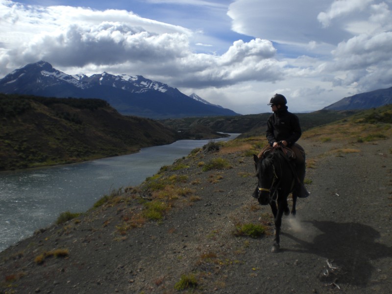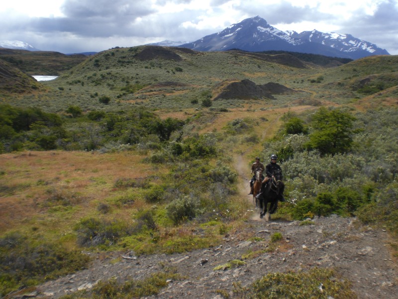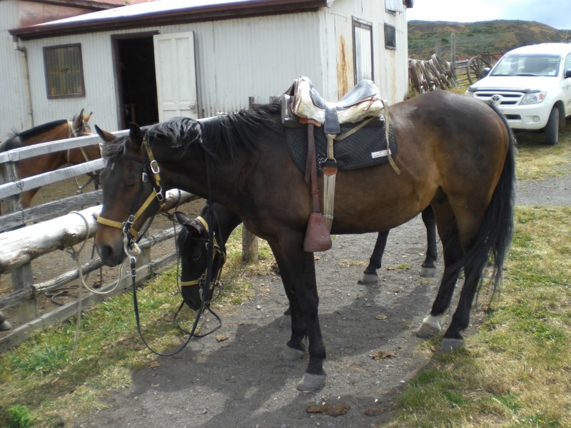 Zu Beginn habe ich schon ein mulmiges Gefühl; bin ich doch noch nie länger als ein paar Minuten auf einem Pferd gesessen. Wir wollen es wissen und buchen eine zwei Stunden Tour. Franzi gibt mir noch ein paar Tipps um mich zu beruhigen. In gemütlichem Tritt gehts dann los durch die Weite Patagoniens.